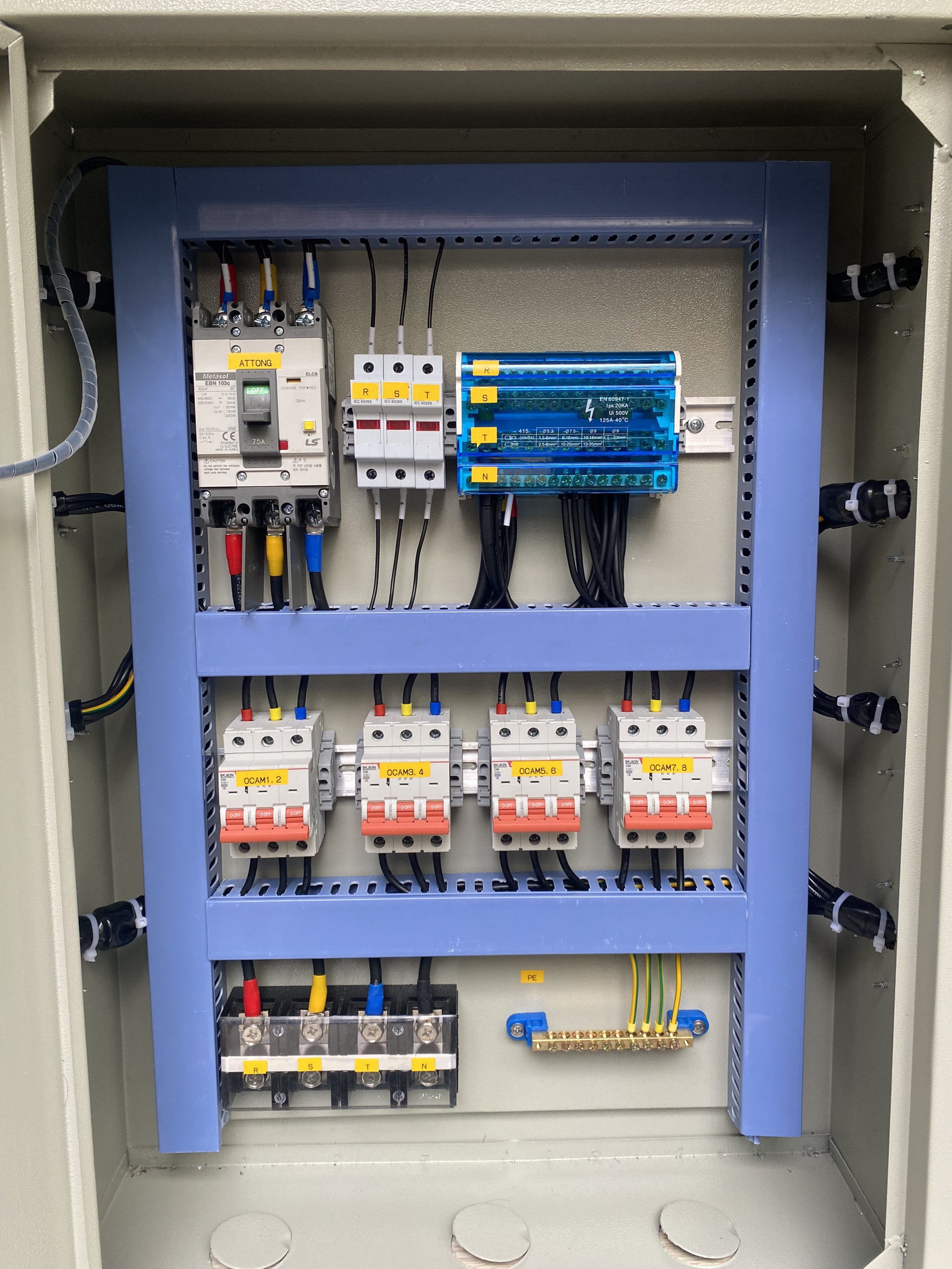 Tủ điện thi công thường dùng trong các công trình. Mục đích cấp điện cho các máy móc để thi công trong công trình.